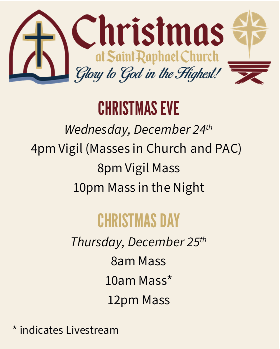 at Welcome Center at weekend Mass times